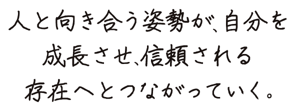 お客様に対しても、スタッフ同士でも、思い込みで判断せず、相手の話をしっかり聞いたうえで行動することを大切にしています。以前、困っていたお客様のお話を丁寧に伺い、状況を整理して説明したところ、「とても分かりやすい」と言っていただけたことがありました。その経験から、相手の立場に立つ姿勢が信頼につながるのだと実感しました。入社当初は不安もありましたが、先輩方が常に気にかけ、声をかけてくれたことで、安心して仕事に向き合うことができました。現在はリーダーとして、当時支えてもらった経験を活かし、後輩が安心して働けるよう周囲に目を配ることを意識しています。そうした日々の積み重ねが、より良い店舗づくりにつながっていくと考えています。